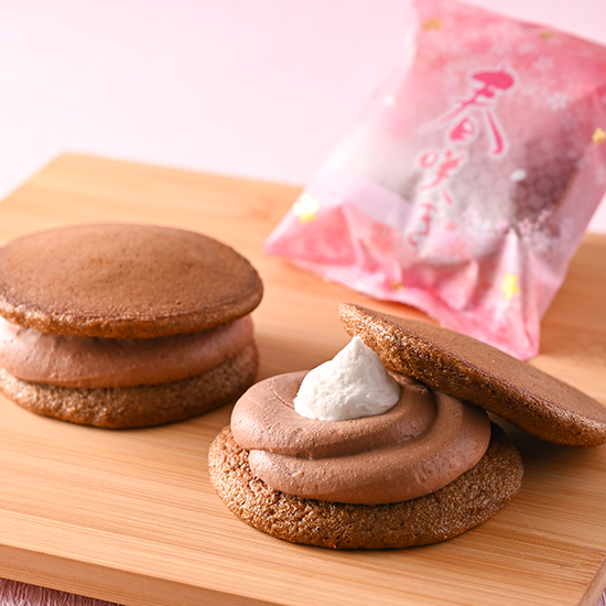 重厚感のあるビターな美味しさが特徴のガーナ産カカオ豆から作られたクーベルチュールチョコに 、フレッシュな生クリームを合わせた「ショコラクリーム」。カカオパウダーを手粉に使い、「讃岐の大粒いちご」と「ショコラクリーム」を合わせて やわらかな白餡の大福餅で包んでいます。ほのかに香るカカオパウダーと一緒に味わう生チョコクリーム、さらにフレッシュないちごとのハーモニーがお楽しみいただけます。
