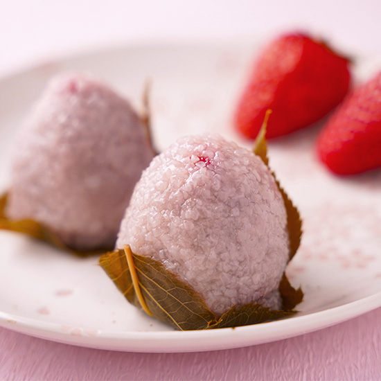 讃岐の大粒いちごをあっさりこし餡で包み、薄紅色の道明寺餅に仕上げています。いちごの味わいと塩漬け桜葉の香りが奏でるハーモニーは想像を超えます。