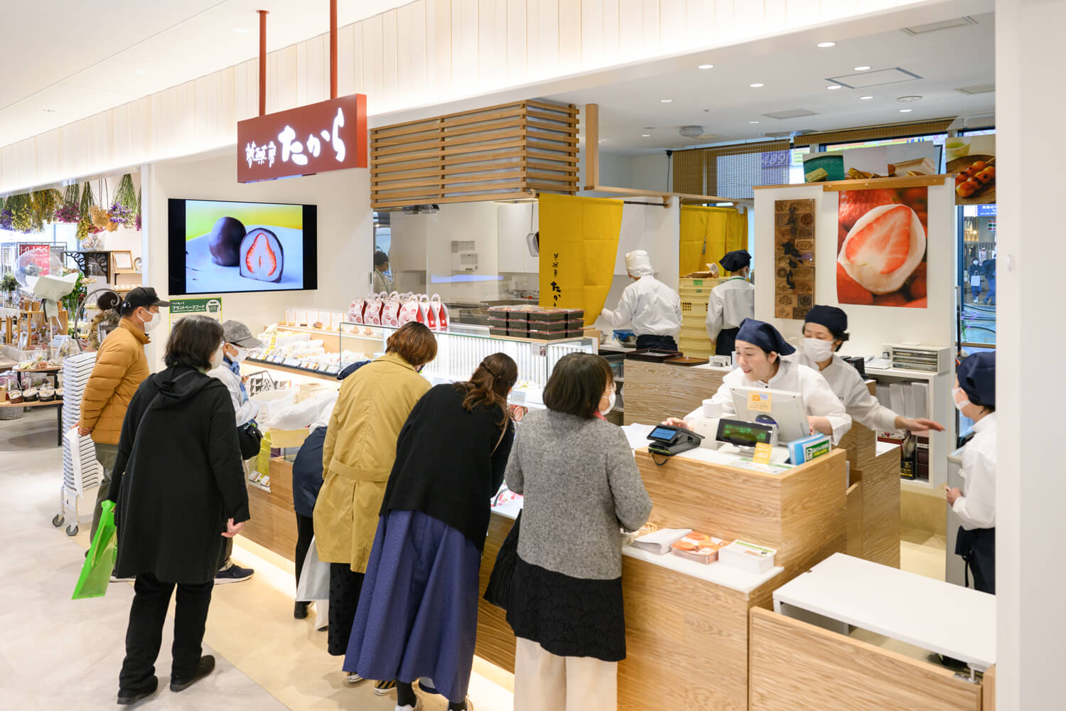 去る3月22日、当社初の支店となる「高松オルネ店」が開業1周年を迎えました。「オルネ/ぽてっと、あずき」や「瀬戸芸手作り最中あんバターサンド」などの讃岐の新しい手土産を始め、季節のフルーツ大福などもご愛顧いただき、無事1周年を迎えられた事に感謝申し上げます。また徳島文理大学、県立アリーナも出来、今年は瀬戸内国際芸術祭も開催されます。そんな2周年に向かって、これからも精進して参ります。今後ともよろしくお願いいたします。