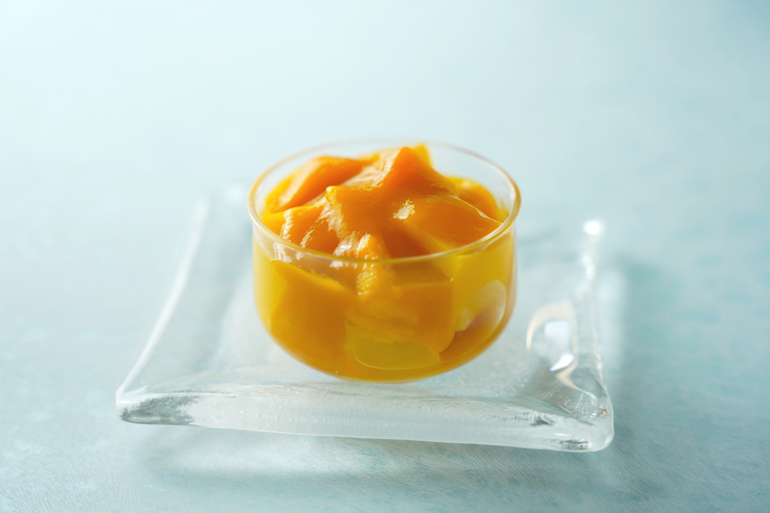 三豊産大玉びわの種をくり抜き、少しのあんずを加えて爽やかなびわゼリーに仕上げており、独特なびわの食感も楽しめます。