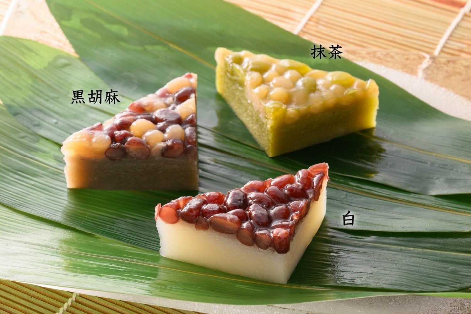 氷室の氷を形取った三角形の外郎の上に、それぞれの小豆を乗せて蒸しあげた夏の冷菓「水無月」。小豆の持つ旨味と葛を練り込んだもっちり外郎の組み合わせは、まさに外郎の極みです。6月30日「夏越しの祓」の日に、夏の無病息災を願って頂く風習があります。