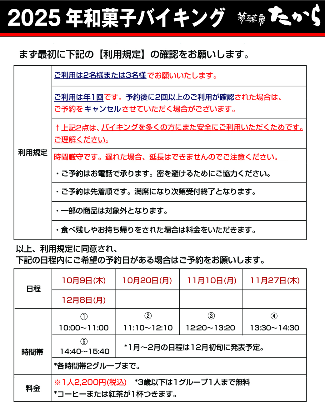 ・ご予約は先着順です。満席になり次第受付を終了させていただきます。