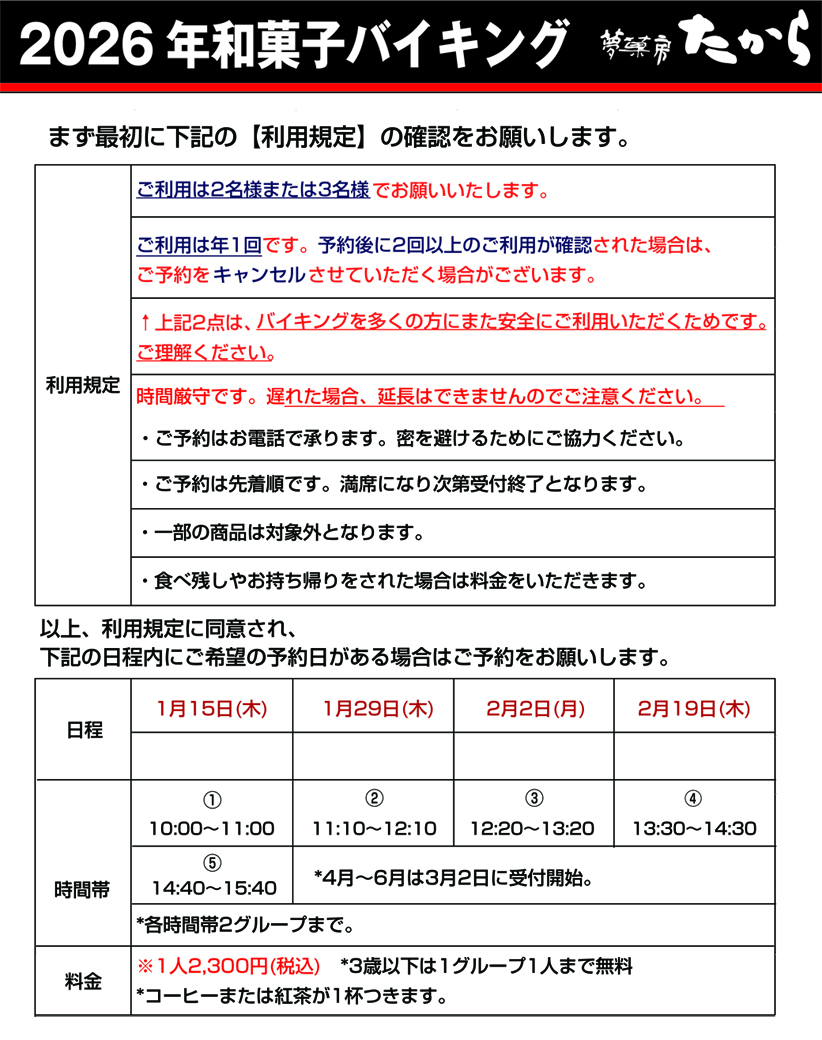 ・ご予約は先着順です。満席になり次第受付を終了させていただきます。