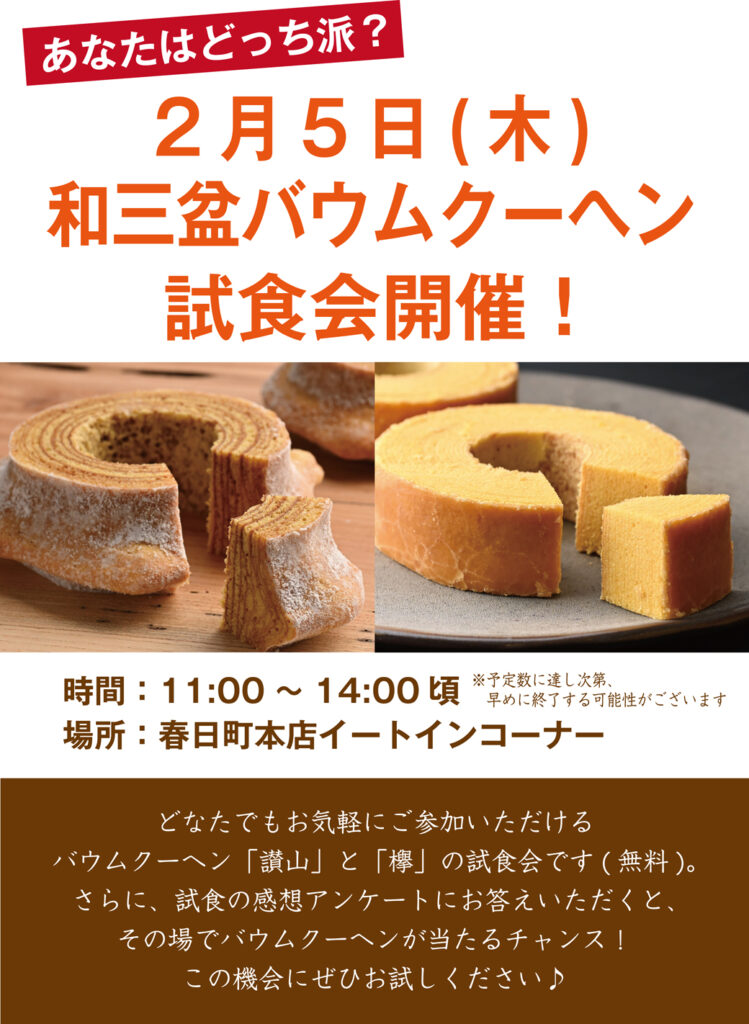 和三盆バウム試食会開催!【参加無料】