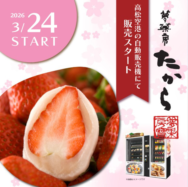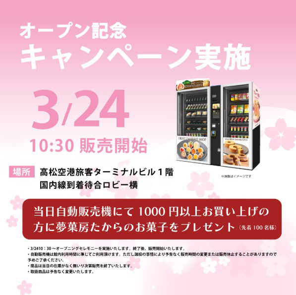 今度、高松空港の国内線到着待合ロビーに 当店の自動販売機が新登場いたします!