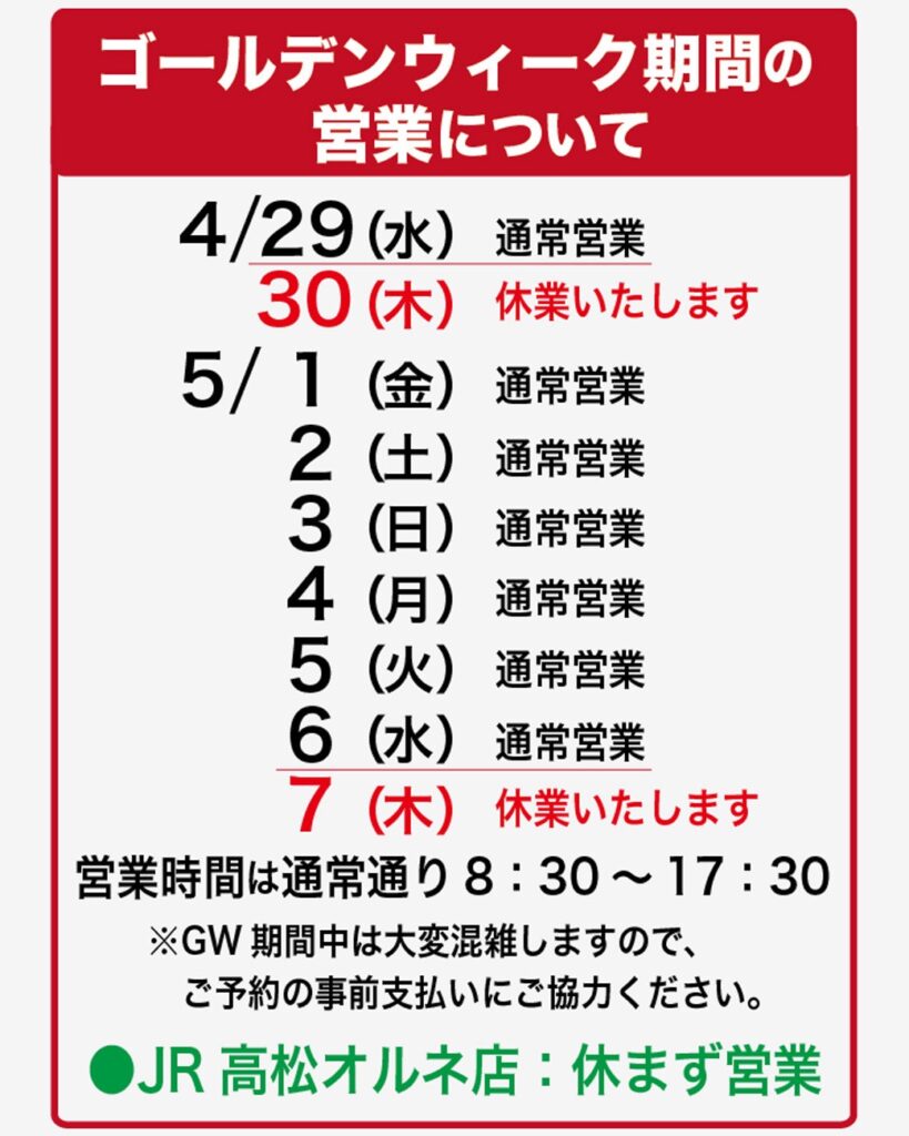 【GWの営業について】