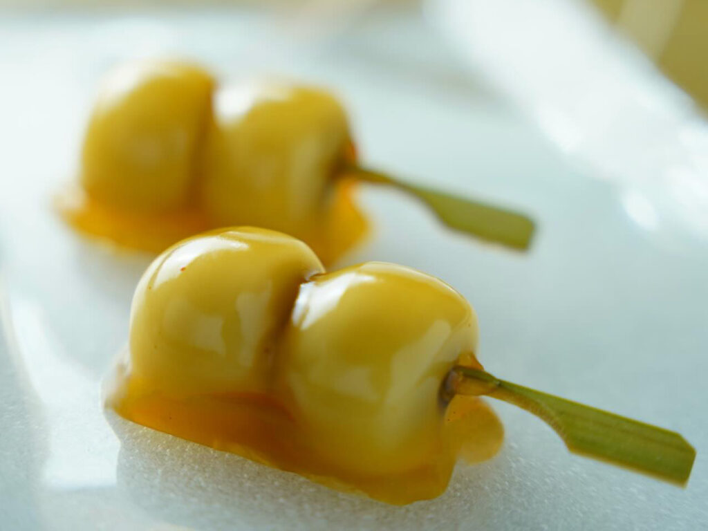 やわらかい讃岐の白みそ餡と、細切り煮ごぼうを包んだ、まるでお雑煮を思わせるはんなりとした和菓子です。お正月には欠かせない長寿を願う銘菓です。