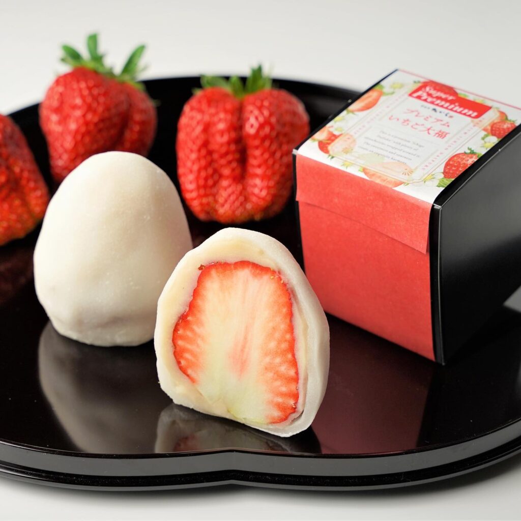 「超特大サイズのいちご」を使った 『Premiumないちご大福』です。1個ずつ小箱に入れてお届けします。