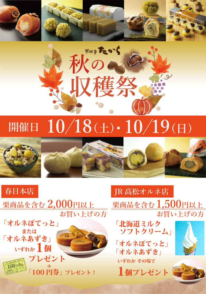 いつも夢菓房たからにご来店いただきまして 誠にありがとうございます。