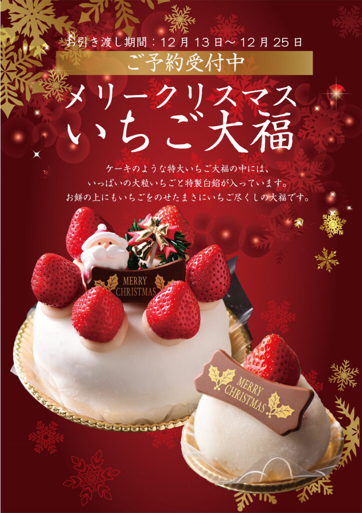 「ミニメリークリスマスいちご大福」「メリークリスマスいちご大福」のご予約承っております。