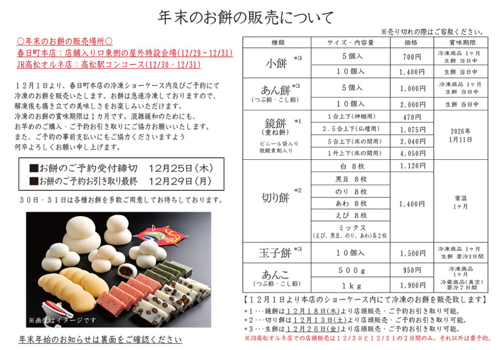 8/7~8/17の期間は、春日町本店・JR高松オルネ店ともに休まず営業いたします。