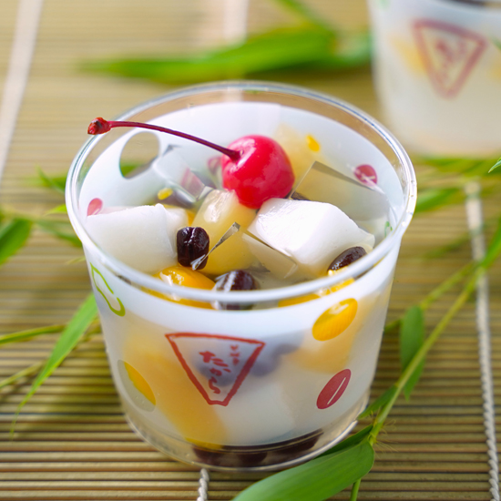 シロップ漬けにした国産青梅を一粒まるごと桃山生地で包みました。黄味あんの柔らかな味と、青梅の爽やかさが口の中に広がります。